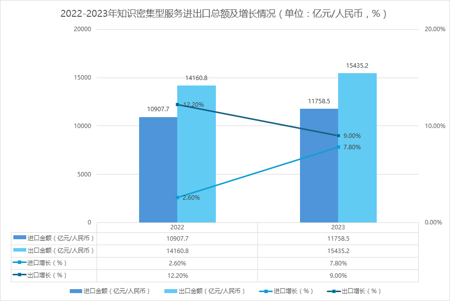 此外,数字贸易正成为中英经济关系中的重要组成。凯瑟琳·劳称,英国对华服务出口总额的41%和从中国进口服务总额的30%都是数据驱动的。中国数据密集型服务的进出口也在迅速增长。据中国商务部数据,2023年,中国电信、计算机和信息服务的进出口增速(8.8%)快于知识密集型服务的整体水平。