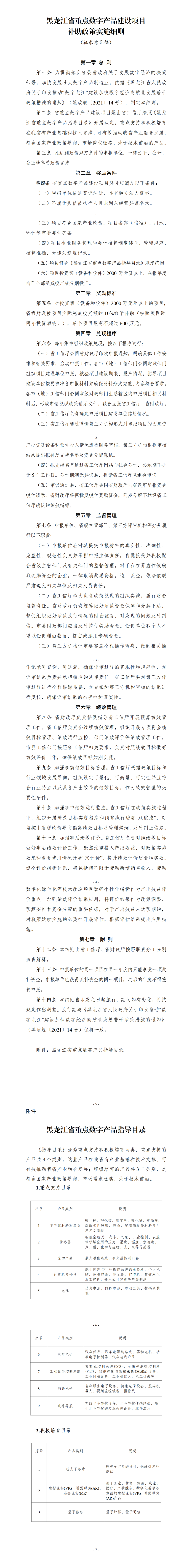 附件:黑龙江省重点数字产品建设项目补助政策实施细则(征求意见稿)