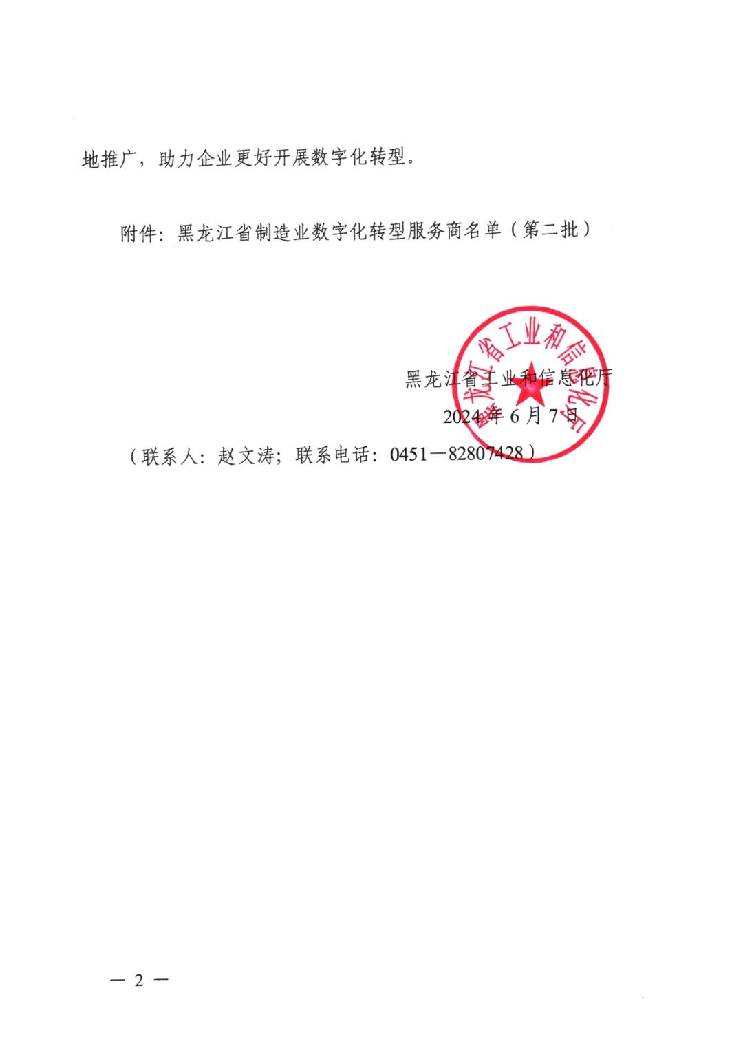 关于公布黑龙江省制造业数字化转型服务商名单(第二批)的通知
