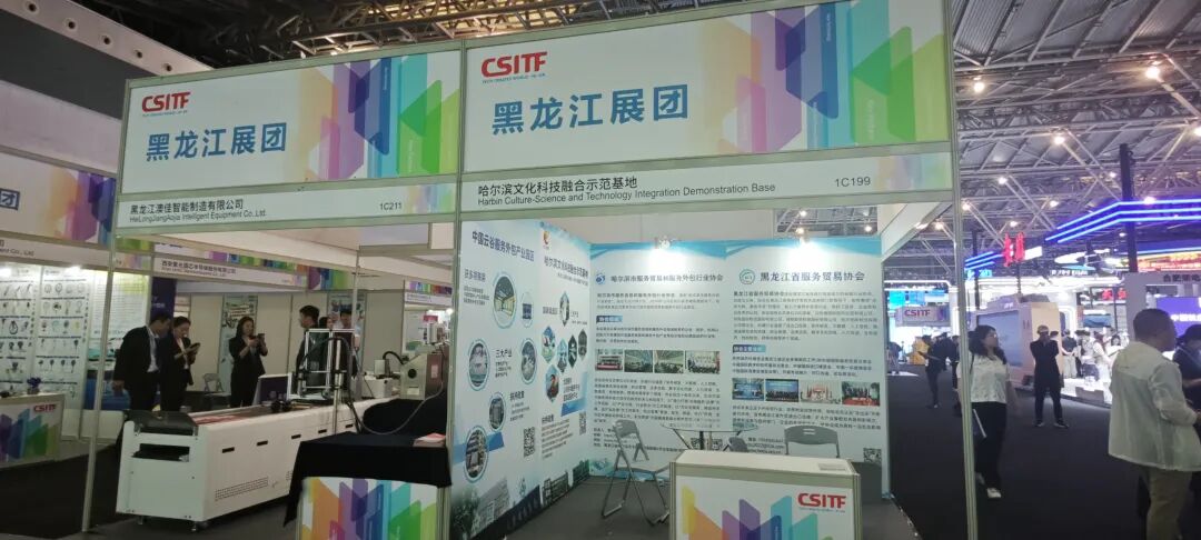 在黑龙江省商务厅、哈尔滨市商务局的统筹带队下,黑龙江省服务贸易协会、哈尔滨市服务贸易和服务外包行业协会组织黑龙江动漫产业(平房)发展基地、黑龙江高新媒体文化产业发展有限公司、哈尔滨经济技术开发区资产经营有限公司、中国机械总院集团哈尔滨焊接研究所有限公司、黑龙江澳佳智能制造有限公司、友好(黑龙江)智能装备有限公司共计8家单位,组成黑龙江展团亮相此次展会。