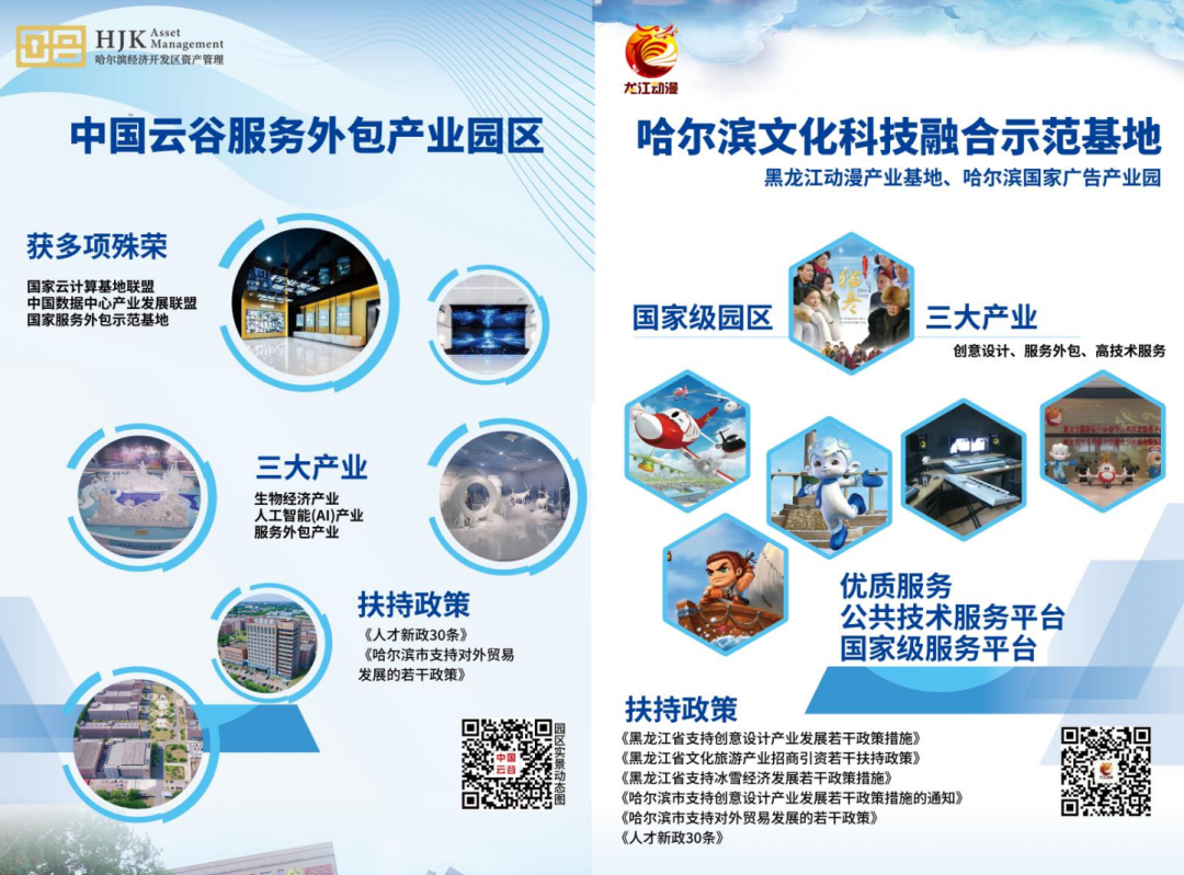 哈尔滨文化科技融合示范基地(黑龙江动漫产业基地、哈尔滨国家广告产业园 )系国家级园区,整合资源,聚焦创意设计等产业与文化 IP 孵化,借服务平台矩阵及政策,推动文化产业数字化升级。