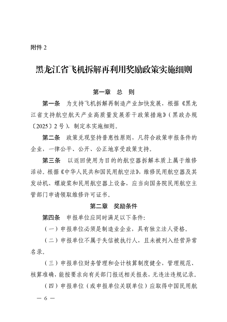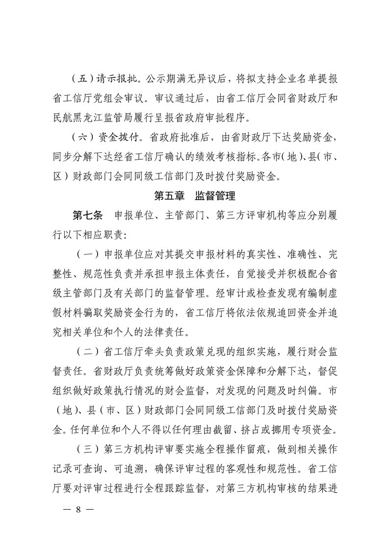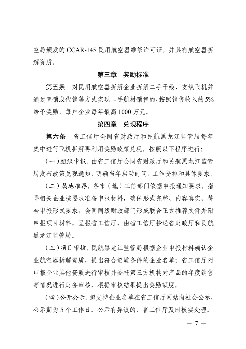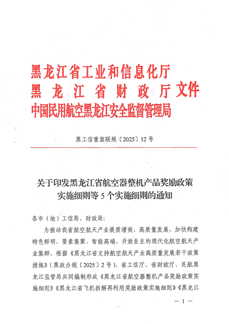 关于印发黑龙江省航空器整机产品奖励政策实施细则等5个实施细则的通知